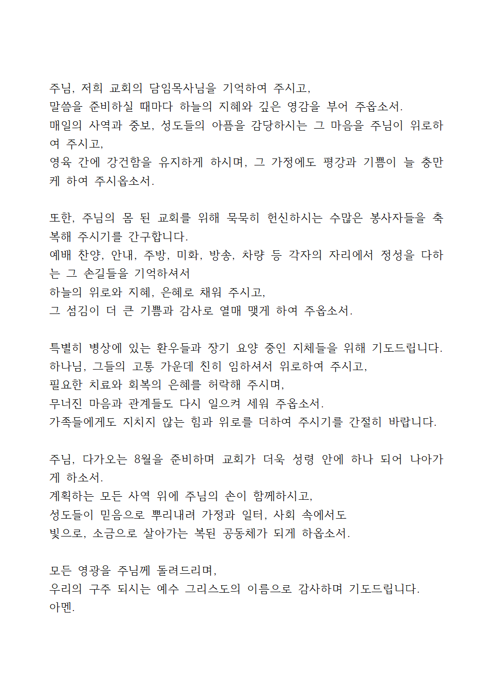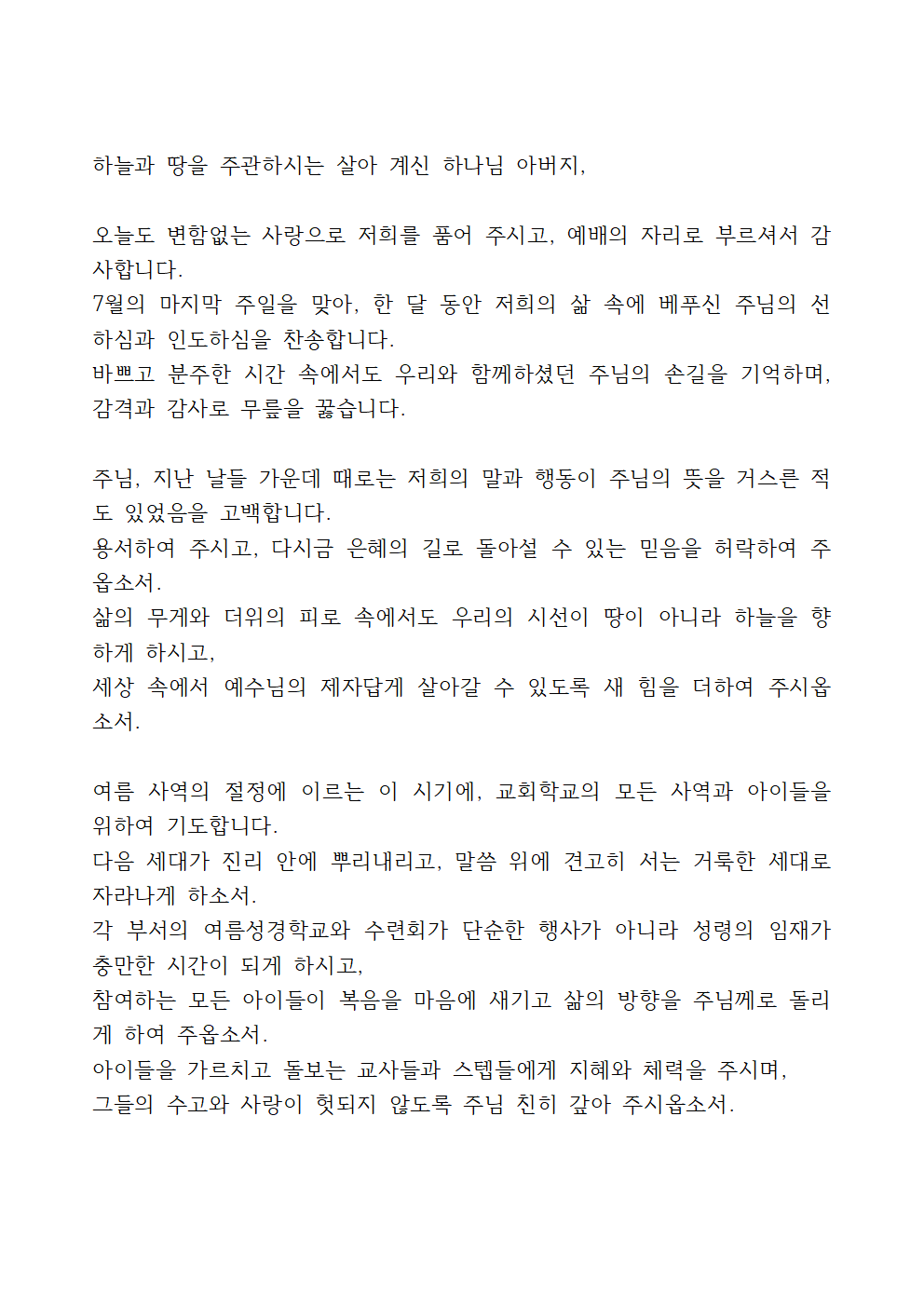7월 마지막주일 낮예배 대표기도문 (첨부 파일)